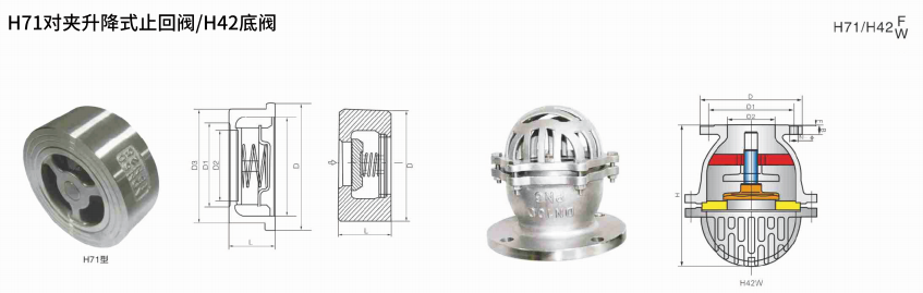 H71型对夹式止回阀1.0/1.6/2.5Mpa主要连接尺寸(单位:mm)